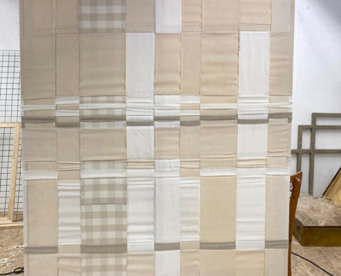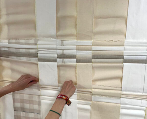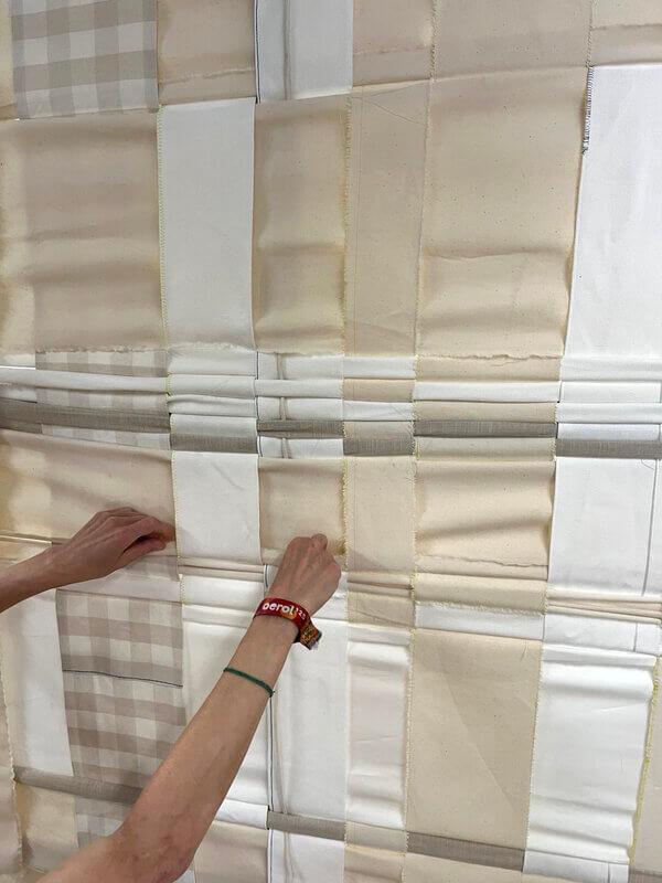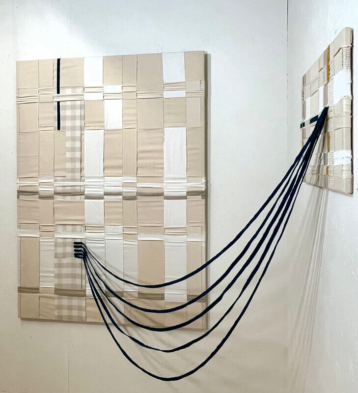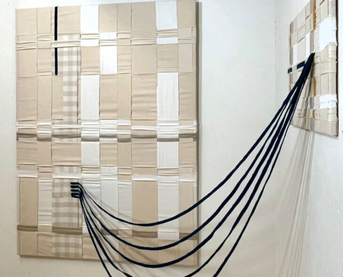 Sie arbeiten auch zusammen. Dazu sagen sie: “Was uns an unserem Arbeitsprozess fasziniert, ist, wie jeder Schritt – jeder Faden, jeder Flicken und jede Naht – den nächsten berührt, während wir jeweils unseren eigenen Weg gehen und uns gemeinsam auf die Suche begeben, bis das Werk ineinander greift.“