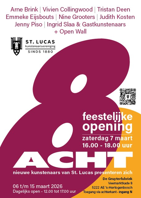 Founded in 1880, St. Luke’s has a wealth of exhibition experience. This time the stage is set for the eight new members of the artist association. They will present their work from March 6 through March 15, 2026 at the Art Square in De Gruyterfabriek. This exhibition celebrates diversity in techniques and themes, from 2D and 3D to photography, drawings, textiles and ceramics.